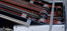 利用輸紙與擋規(guī)速度差,將紙張追抵前擋規(guī),側(cè)方以同步方式與側(cè)擋規(guī)定位,面紙與底紙?jiān)谶\(yùn)行過(guò)程中同步貼合到位,貼合精度高。
